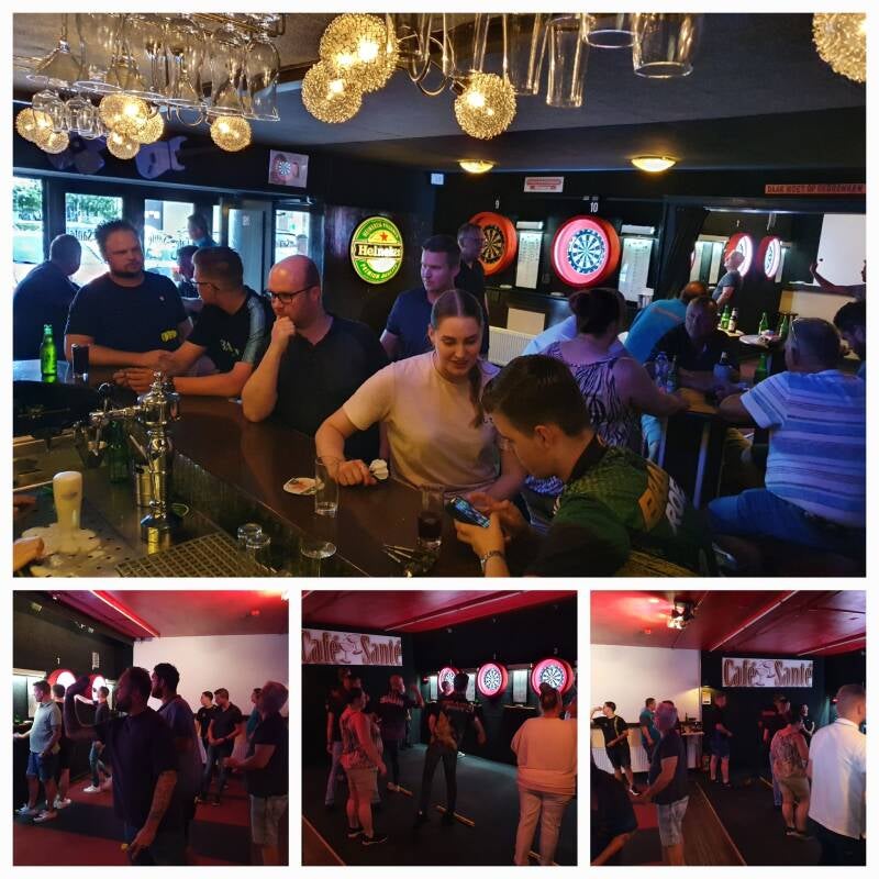 Het toernooi van zaterdag 25 juni leek in eerste instantie een rustig en klein toernooitje te worden, maar groeide uiteindelijk uit tot een toernooi met maar liefst 36 deelnemers! Voor het eerst voor ons een toernooi waarbij negen van de tien dartbanen gebruikt werden in de poulefase in een super gezellige sfeer en waarbij de organisatie vlekkeloos verliep. Helaas was het alleen nog wat warm binnen (na de tropische temperaturen van de voorafgaande week), waardoor er veel pauzes buiten werden genomen, waardoor het toernooi uiteindelijk in de knock-out fase wat trager verliep (maar daar hoorden we gelukkig geen klachten over :))!